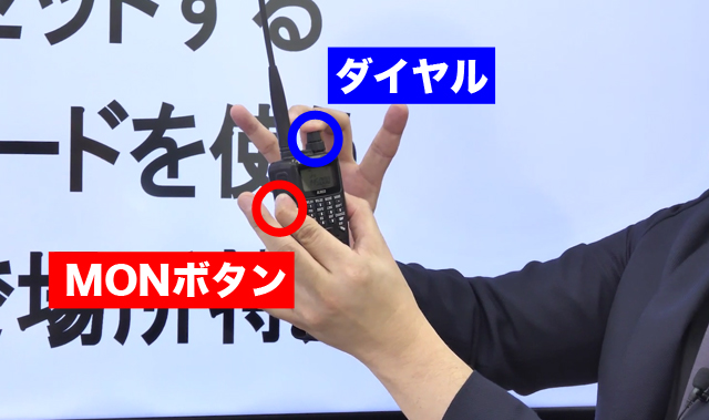 DETECTで止まった周波数のまま、受信機の音量を最大まで上げます。