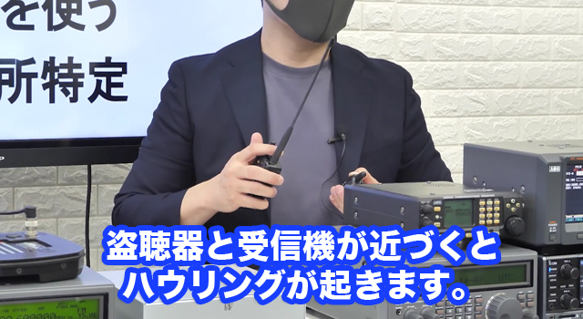 電波の発信源に近づくにつれて、スピーカーからハウリング音が強くなります。