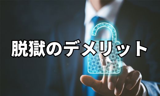 また、無事に脱獄できたとしても正規のアプリが正常に作動しなくなることもあるようです。 特に銀行口座を管理するアプリなどは、そのスマホで振り込みなどができなくなることがあるようです。