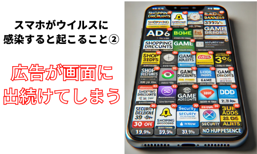 スマホがウイルスに感染すると、広告などのポップアップがどんな状況でも出てきてしまいます。なかなか厄介な存在です。