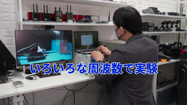 一般的な盗聴器で最も多く使われている周波数帯でテストを行いました。